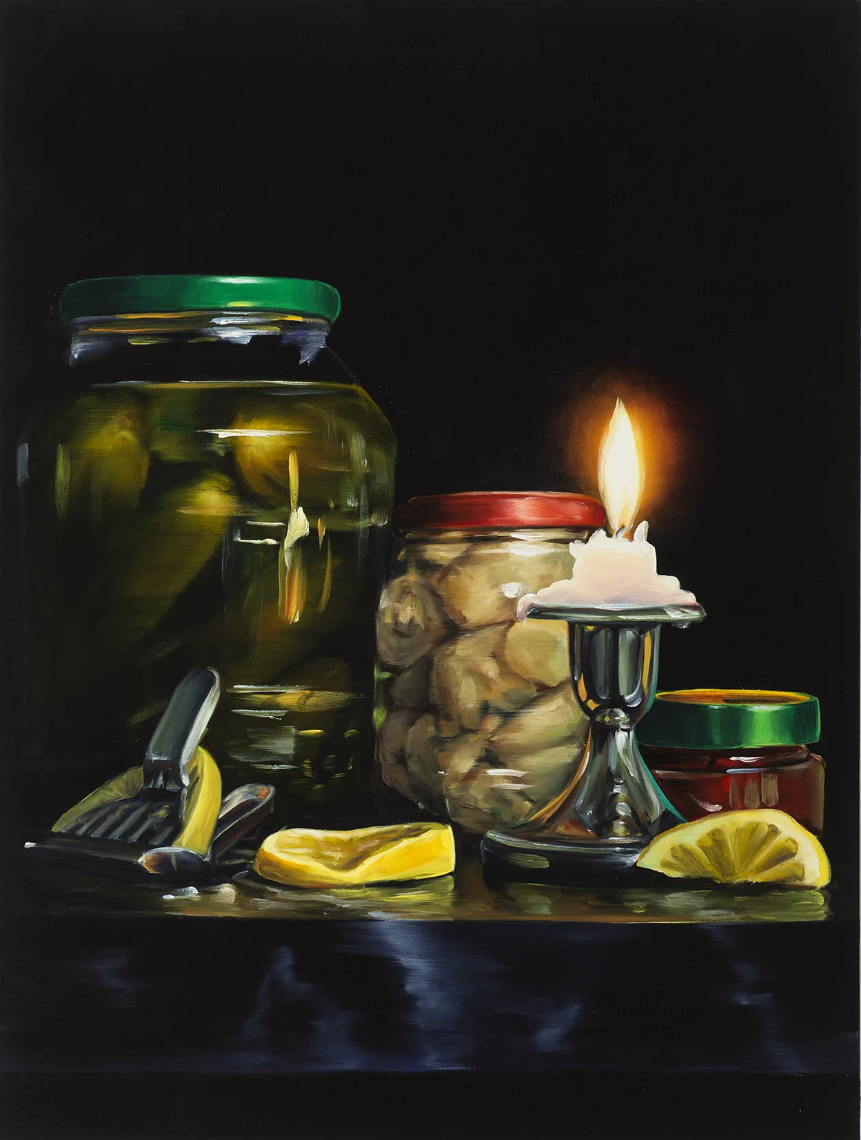 BILD: Cornelius Völker, „Kerze mit Eingelegtem“, 2021, Öl auf Leinwand, Privatsammlung © Cornelius Völker / VG Bild-Kunst, Bonn 2023, Foto: Christoph Münstermann, Düsseldorf